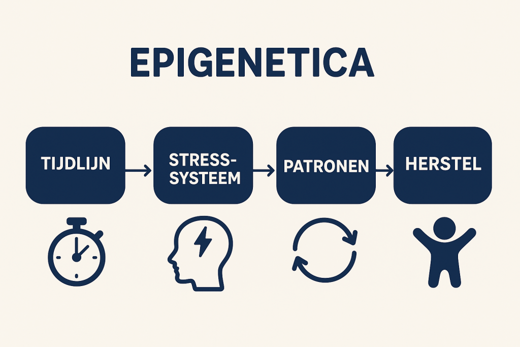 Dit heeft alles te maken met de werking van de HPA-as (hypothalamus-pituitary-adrenal axis). Deze reguleert ons stresssysteem, maar wanneer er veel stress of onveiligheid is, kan de as overgevoelig worden afgesteld. Epigenetische mechanismen spelen hierbij een grote rol: ervaringen worden als het ware in je cellen “geprogrammeerd”.